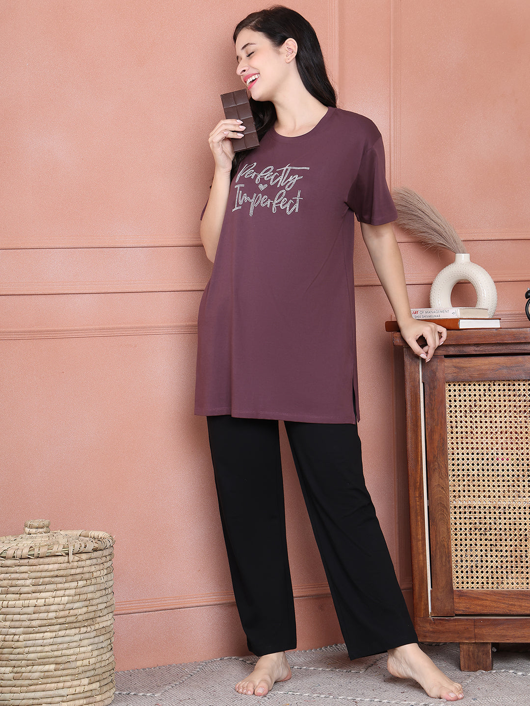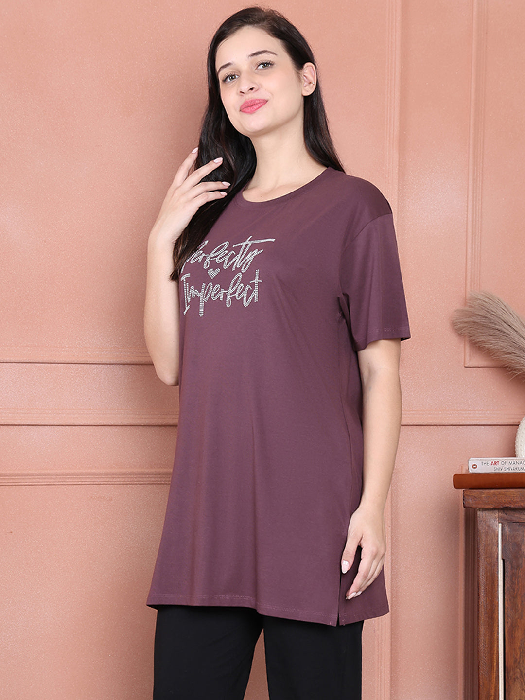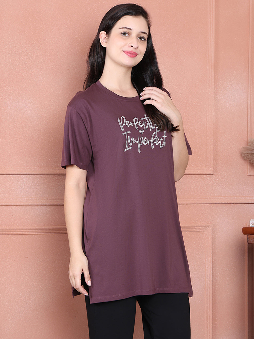 The lounge t-shirt has a round neck and short sleeves. Make comfort your best friend in this lounge t-shirt. Team it with a pair of lounge pants to feel cool and relaxed.